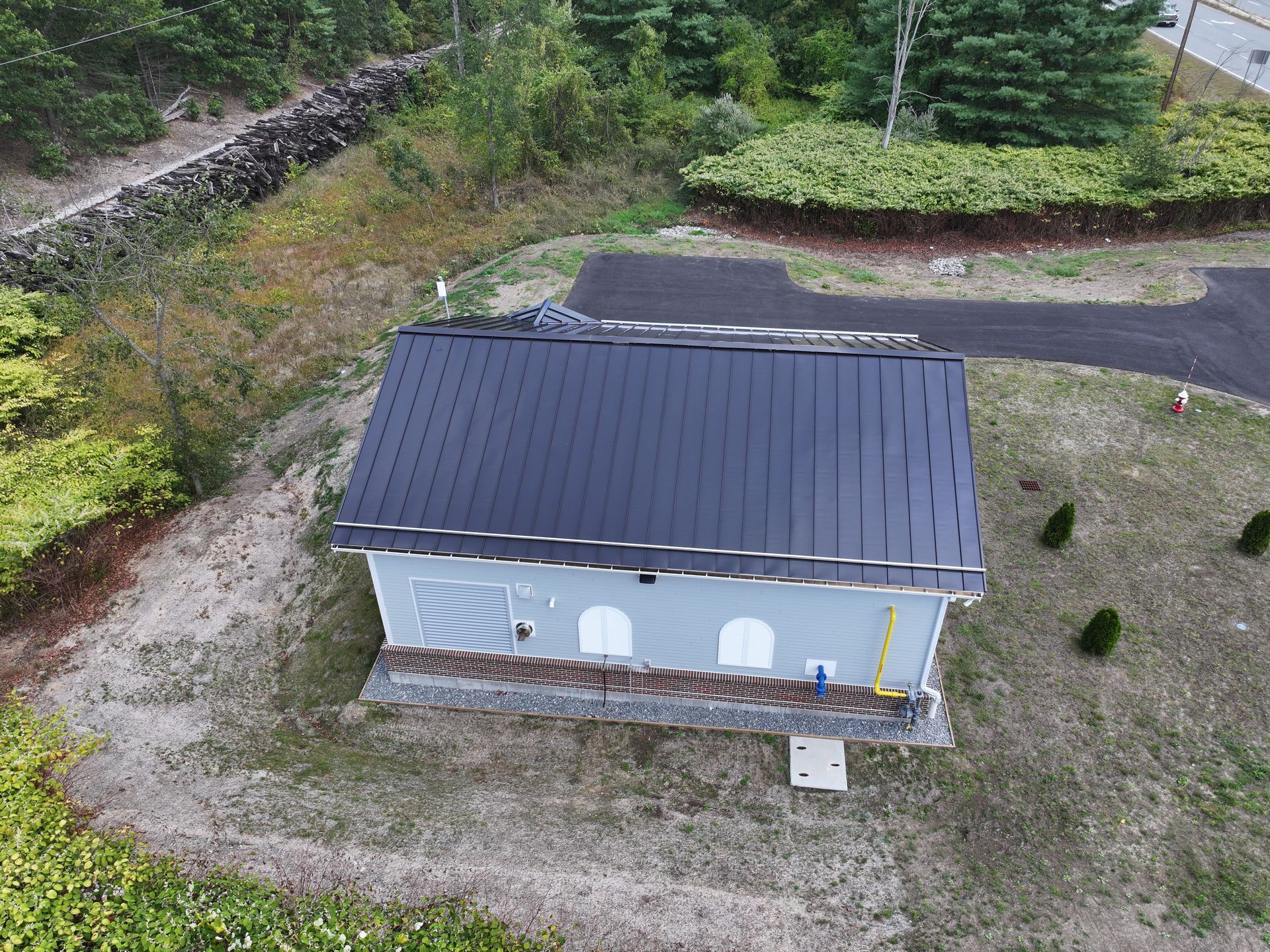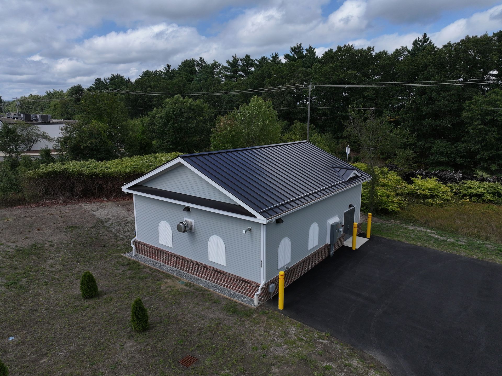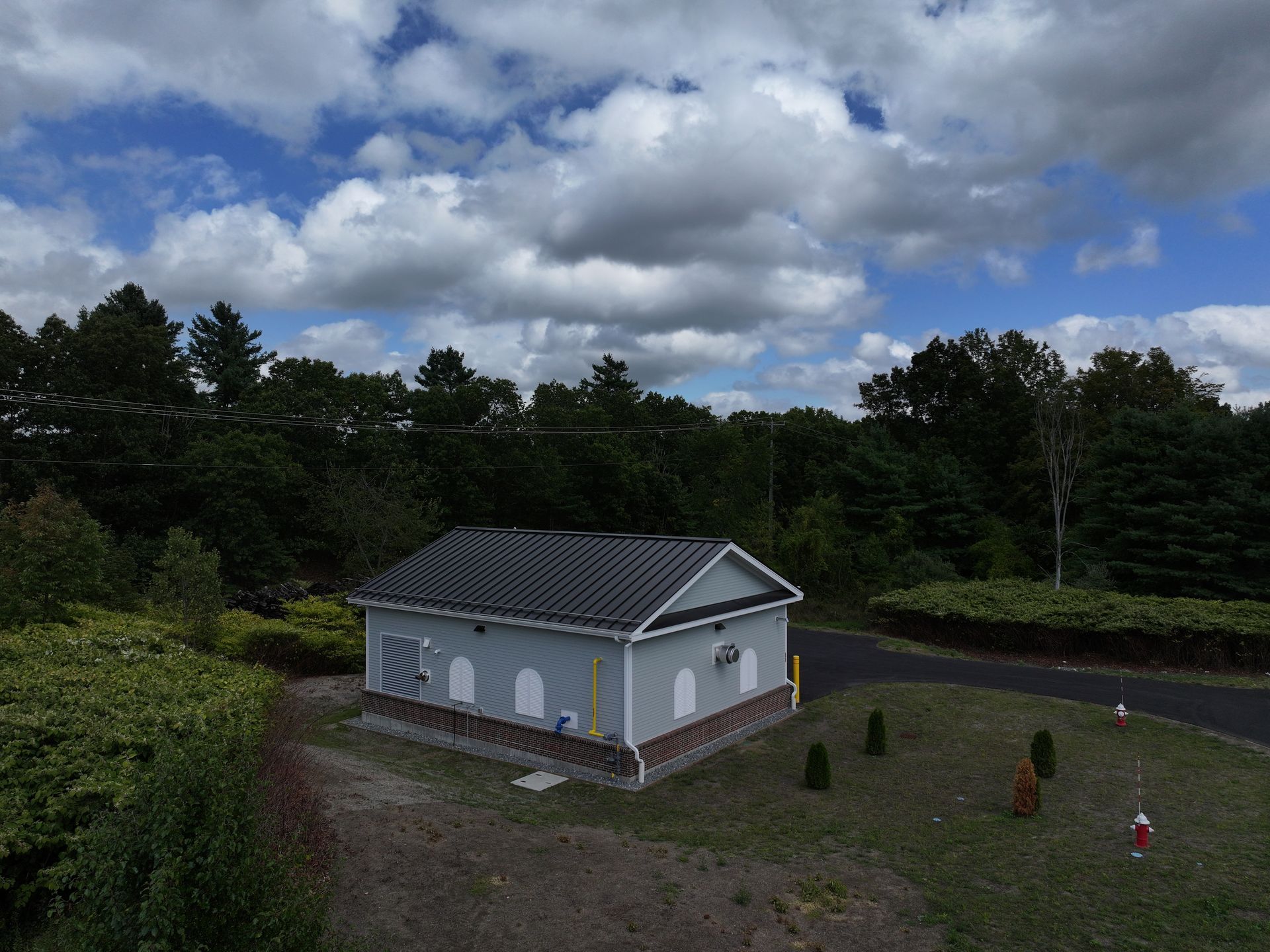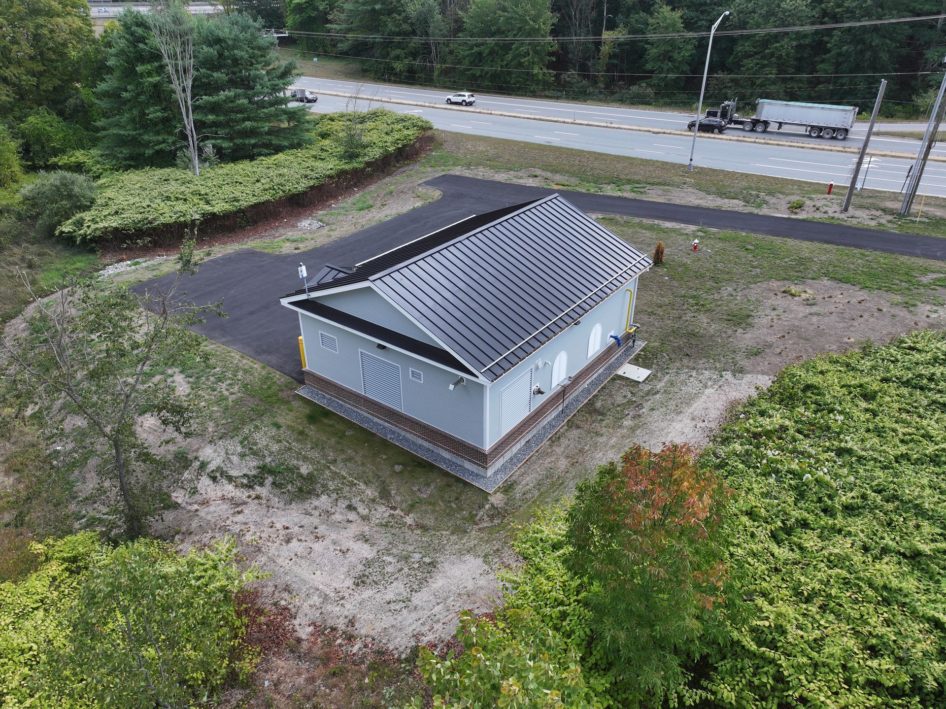 HAWSCO successfully constructed a 42’ x 34’ Water Booster Pump Station for the Town of Milford NH, delivering the Project from foundation to finish. Yard Piping includes 16” Ductile Iron Pipe, 16” MJ Gate Valves, Suction and Discharge Hydrants, Catch Basin and Drainage System. The station features a CMU Block structure strapped with Hardie Siding and PVC Trim, a Wood Truss system and Standing Seam Metal Roof with Seamless Gutters and Snow Stops for safety.