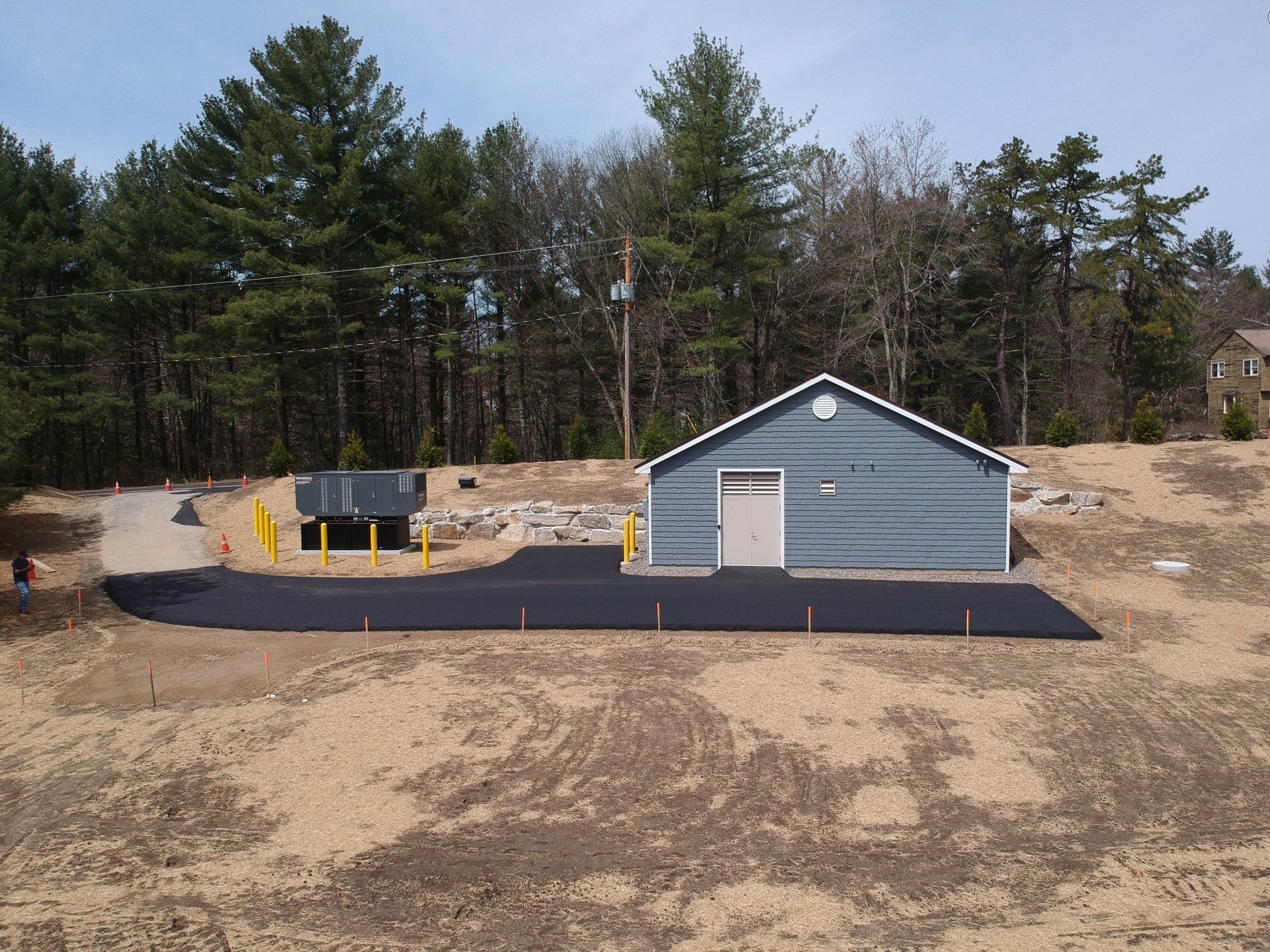 The Bedford NH Pump Station is a Booster Station that provides Water for domestic use, irrigation and Fire Protection for a new development. HAWSCO performed all work from the Foundation up for a 22’ x 24’ CMU Building that is strapped and sided with Vinyl Siding, new 208 VAC Electric Service, a full HVAC System, REPCO Control System with full Instrumentation and Controls, and a 100 KW Natural Gas Generator.